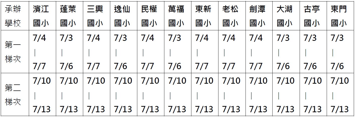 (三)協辦單位:濱江國小、蓬萊國小、三興國小、逸仙國小、民權國小、萬福國小、東新國小、老松國小、劍潭國小、大湖國小、古亭國小、東門國小
