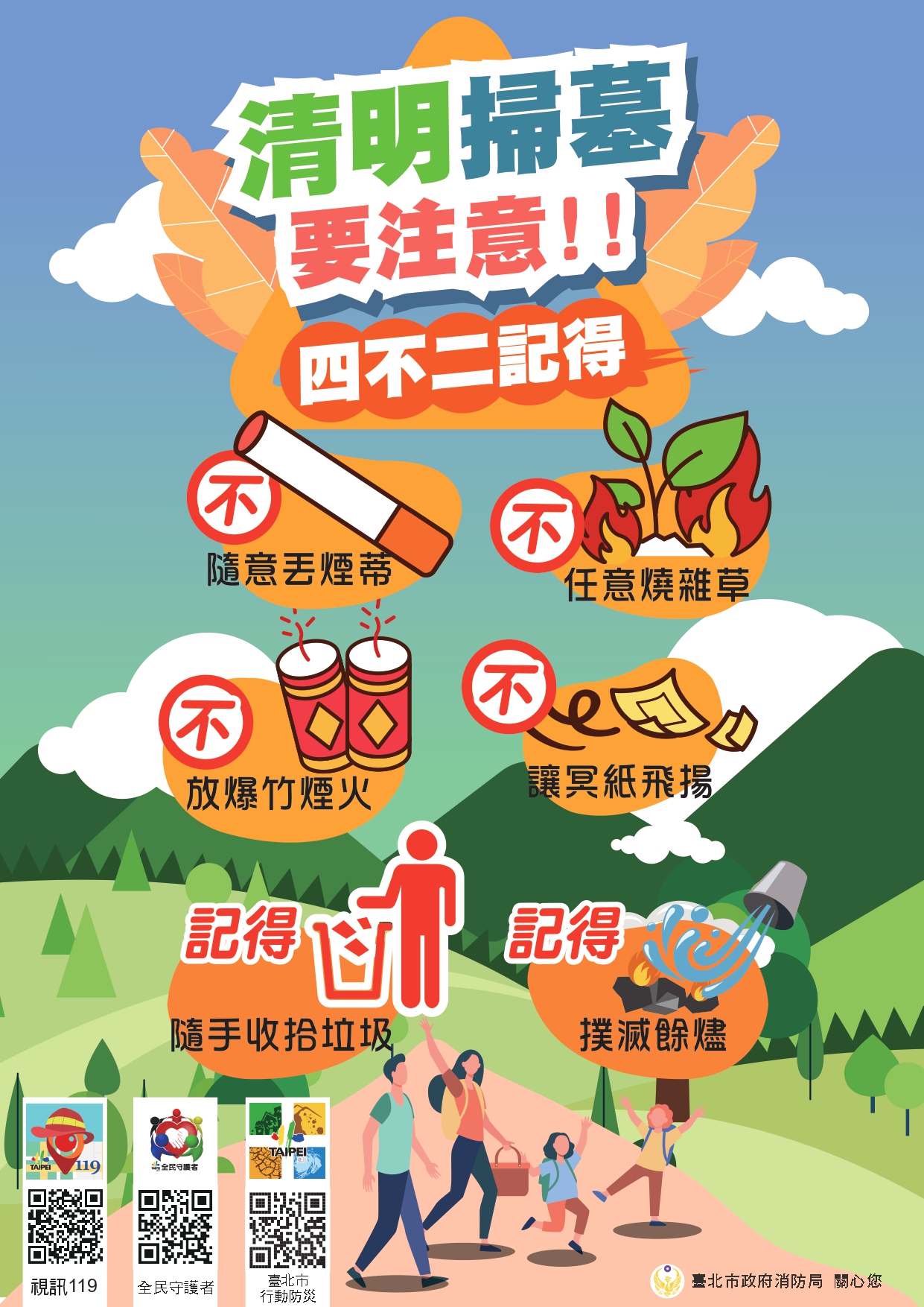 民族掃墓慎思追遠的季節又到了,每年值此時節,由於上山掃墓焚燒香燭、紙箔易引發山林火警,為防範未然,籲請大家注意下列用火安全,共同做好火災預防工作,平平安安地度過這個富有意義的節日。
