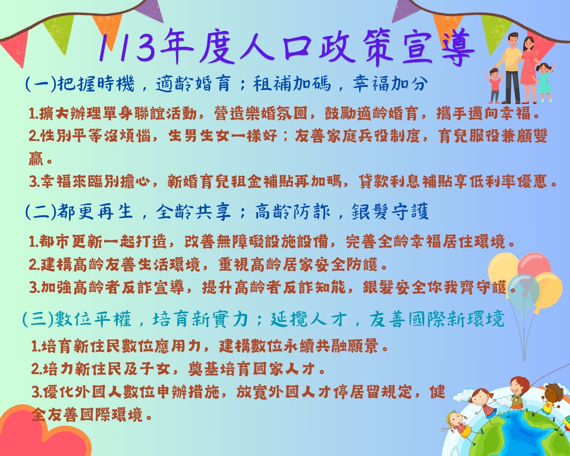 「都更再生,全齡共享;高齡防詐,銀髮守護」、