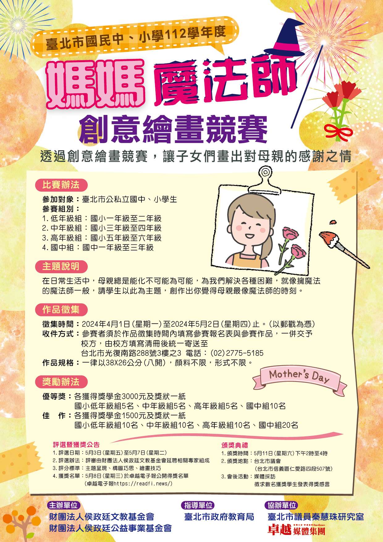 (五)評選暨獲獎公告: 1、評分標準:主題呈現、構圖巧思、繪畫技巧。 2、獲獎名單將於5月8日(星期三)於卓越電子報 (https://readfi.news/)公開得獎名單。